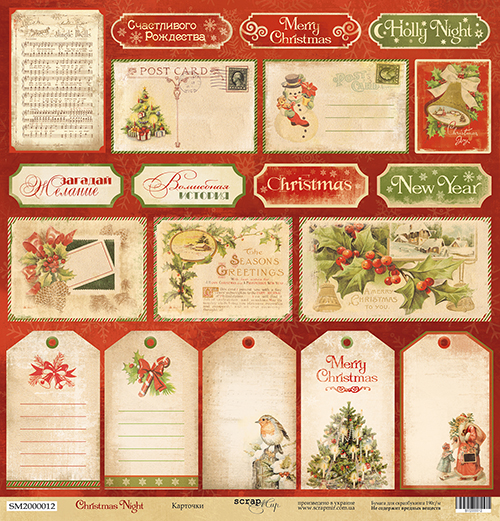 Бумага Scrapмир "Christmas Night", Карточки (SM157)