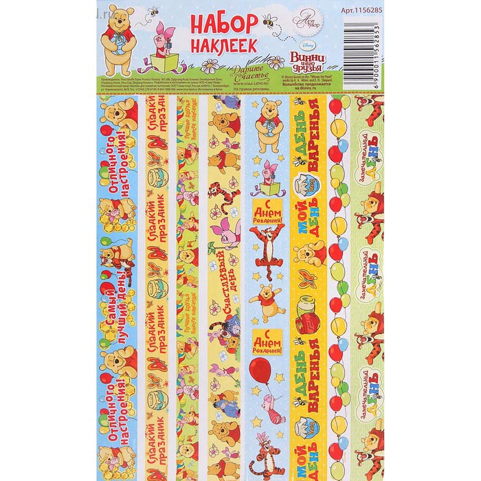 Бумажные наклейки Артузор "Винни и его друзья"