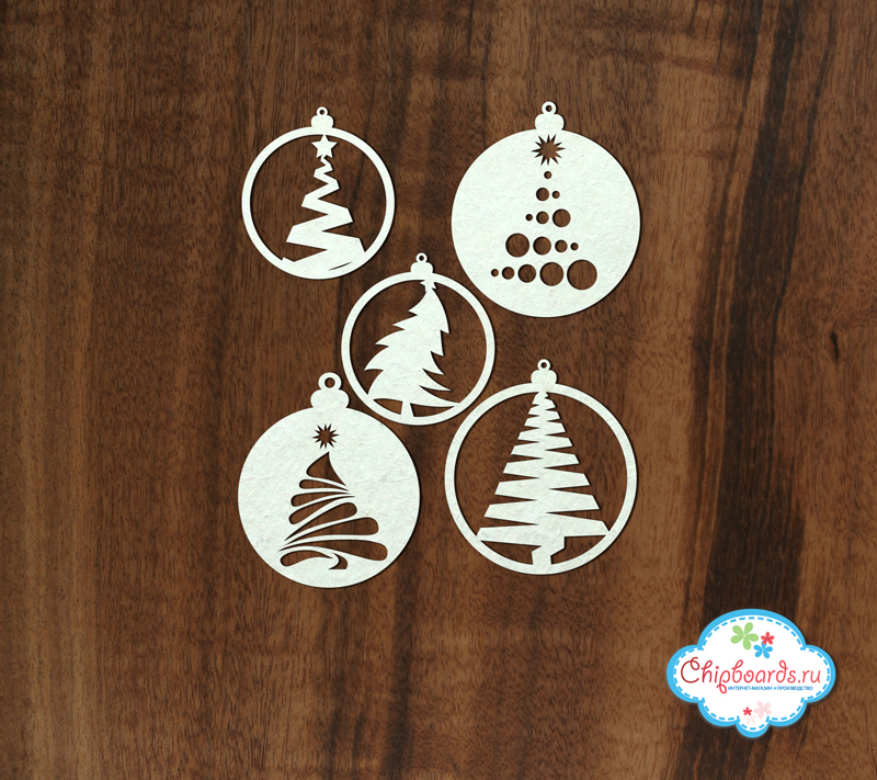 Набор игрушек с елочками внутри - 4,5см и 3,5см в диаметре. Чипборд выполнен из материала толщиной 0,9мм.