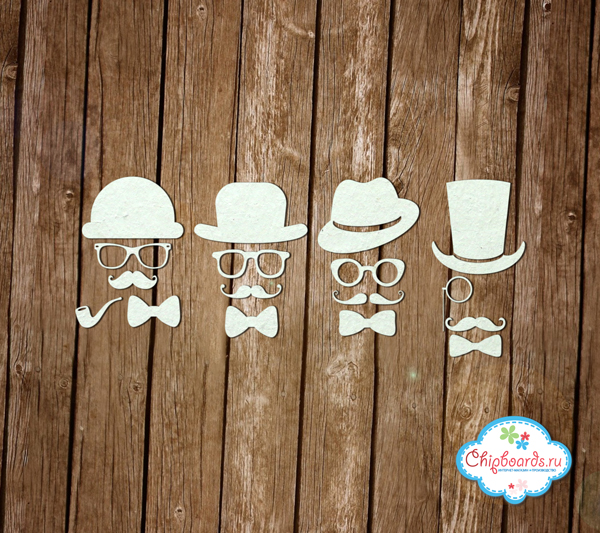 Набор "Джентльменский". Поможет в оформлении работ на мужскую тематику.Шляпы в среднем 3 Х 3 см. Усы в длину ~ 2 см. Чипборд выполнен из материала толщиной 0.9 мм.