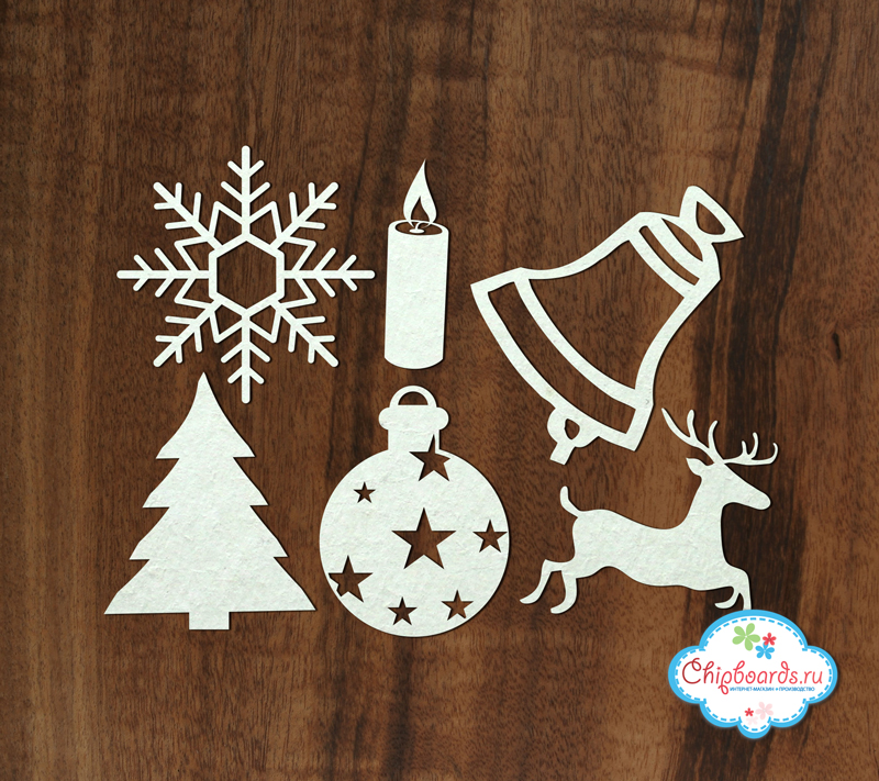 Размер снежинки 4 см. Чипборд выполнен из материала толщиной 0.9 - 1.15 мм.