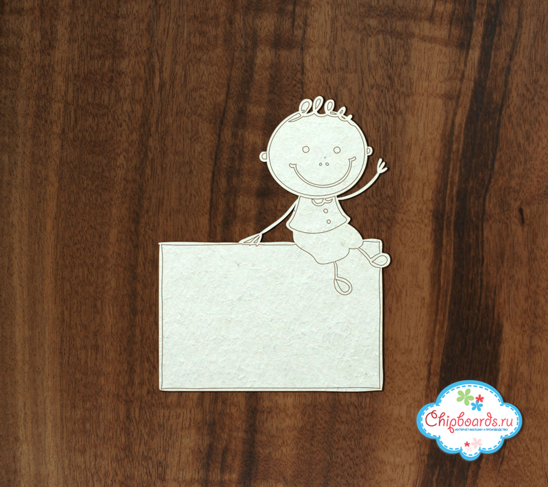 Размер рамки около 7х4,8см. Высота мальчика около 6см. Общая композиция около 9,3см. Чипборд выполнен из материала толщиной 0.9 - 1.15 мм.