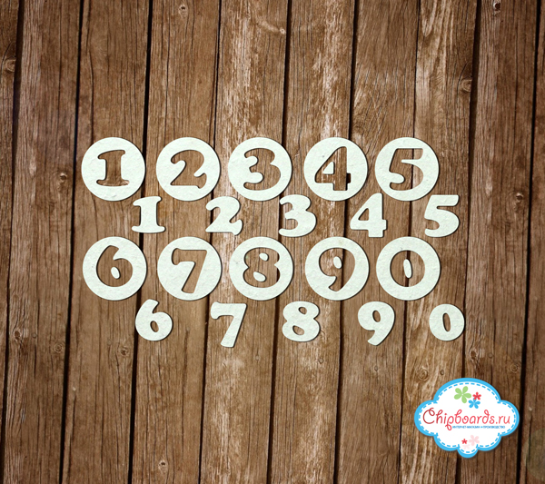 Диаметр кружка с цифрой - 25 мм. 20 элементов. Чипборд выполнен из материала толщиной 0.9 - 1.15 см.