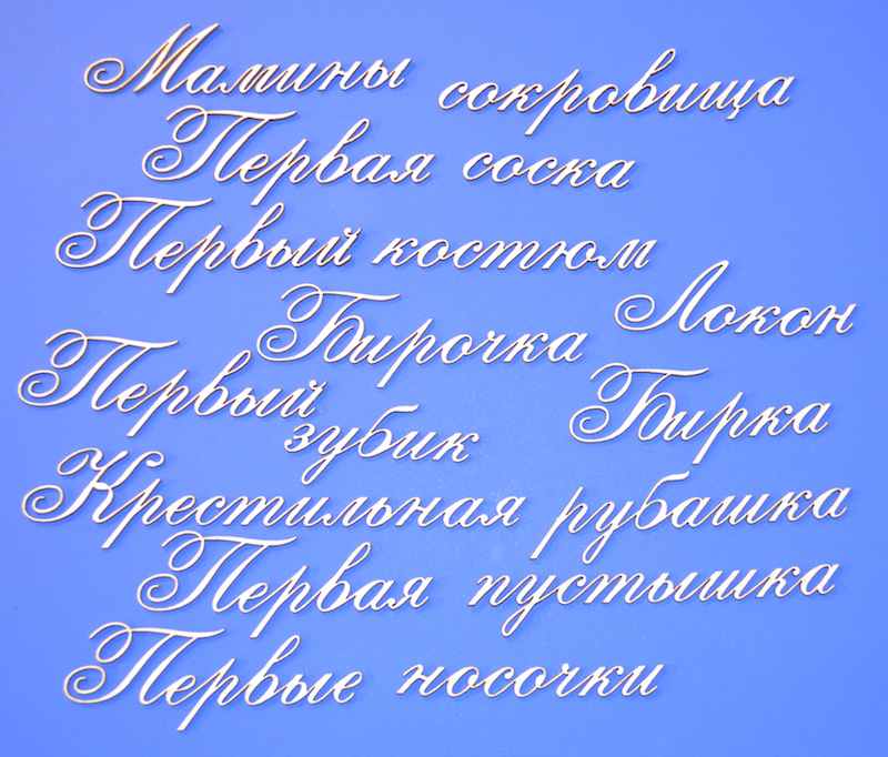 Высота шрифта (маленьких букв) 6 мм. Чипборд выполнен из пивного картона белого цвета толщиной 1,15 мм.