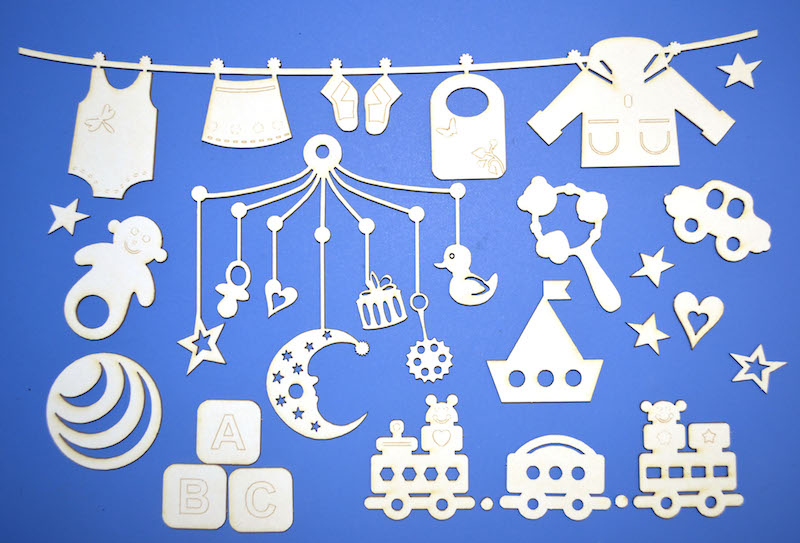 Размер мобиля 80х76 мм. Чипборд выполнен из пивного картона белого цвета толщиной 1,15 мм.