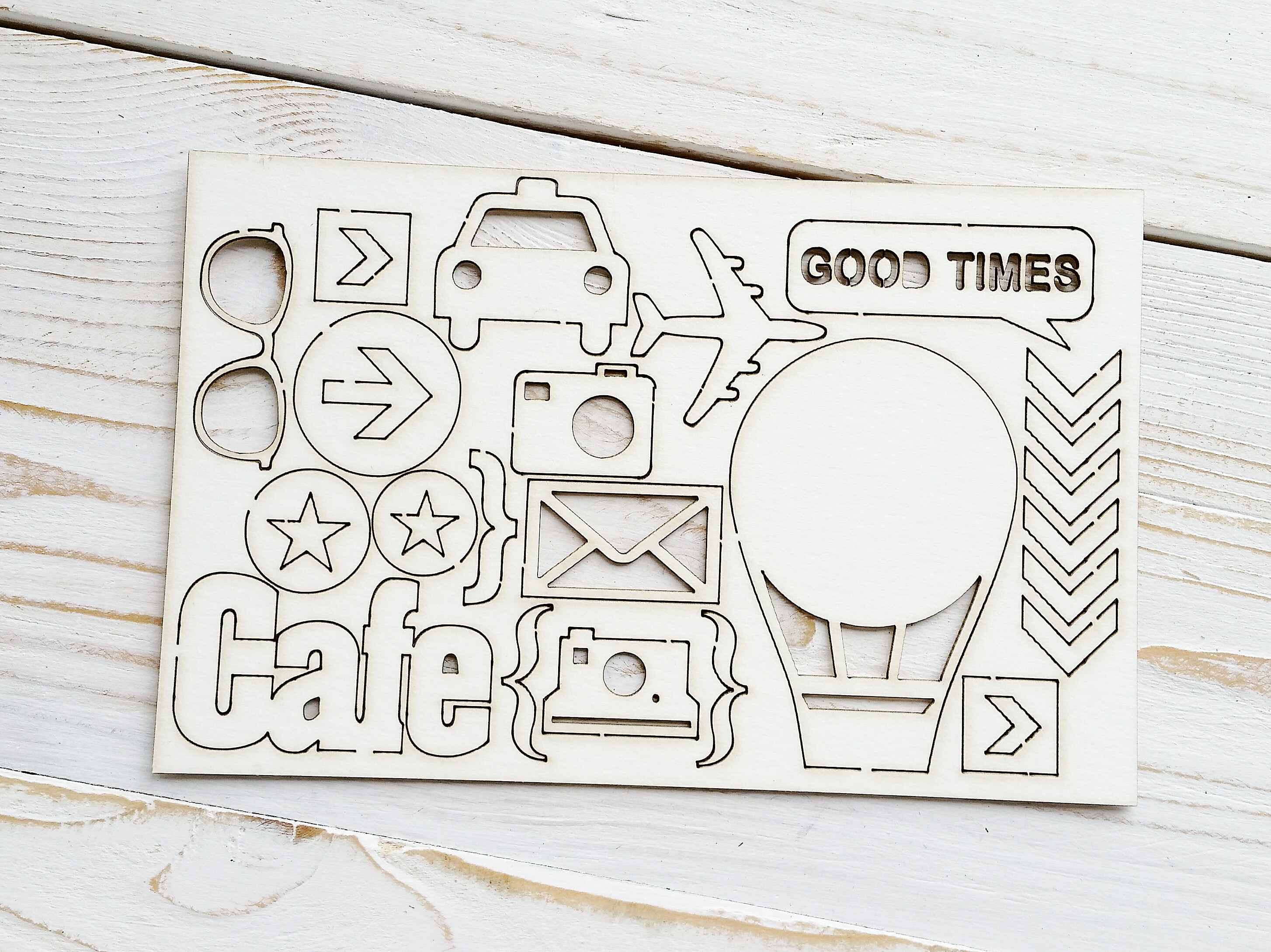 Чипборд из картона толщиной 1.5 мм. Вырезан методом лазерной резки, поэтому возможны характерные следы. Клеится с помощью клея или горячего пистолета. Размер - А5