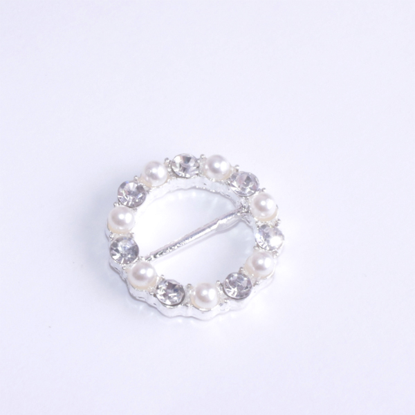 Декоративная пряжка для вставки лент с искуственными стразиками жемчужинками. Диаметр 2,2 см