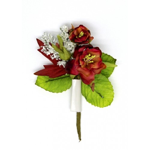 цветочная композиция и цветочков камелии и веточек с листочками. Длина композиции около 10 см, диаметр цвтков около 2-2,5 см