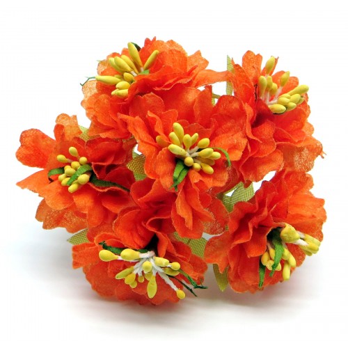Декоративный букетик Рукоделие "Цветочки оранжевые с жёлтыми тычинками"