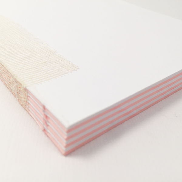 Внутренний книжный блок А6 формата. Цвет полоса светло-розовая, полоса белая. Типографское исполнение. Марлевая проклейка. 96 листов (192 стр.). Бумага 80 г/м.кв. Размер блока 100х140х12 мм.