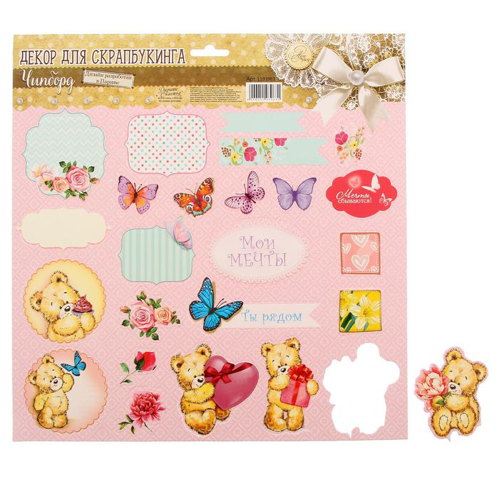 Набор картонных декоративных фигурок на листе 29,5 х 29,5 см. Элементы вырублены. Вырезать не нужно. Достаточно просто выдавить их из общего листа руками, немного нажав.Удобны в использовании. Предназначены для декора любых скрапработ.