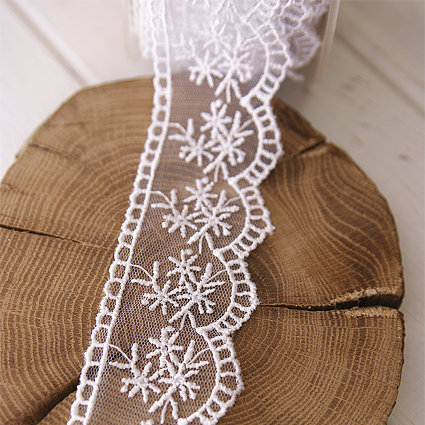Кружево на сетке с вышивкой 4,2 см, цвет белый