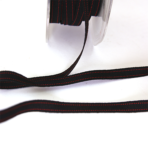 Лента хлопковая 8 мм,цвет чёрный с красными полосками