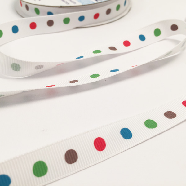 Лента репсовая 12 мм Gamma, разноцветные точки в один ряд