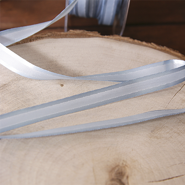 Лента репсовая с атласными полосками 1 см, цвет голубой