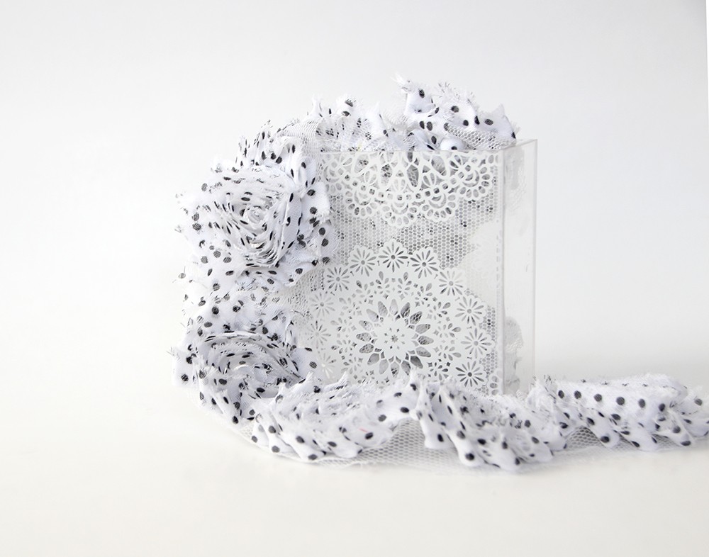 Ширина ленты 6-7 см. Длина около 40 см (включает 7 цветов), диаметр 5-6 см