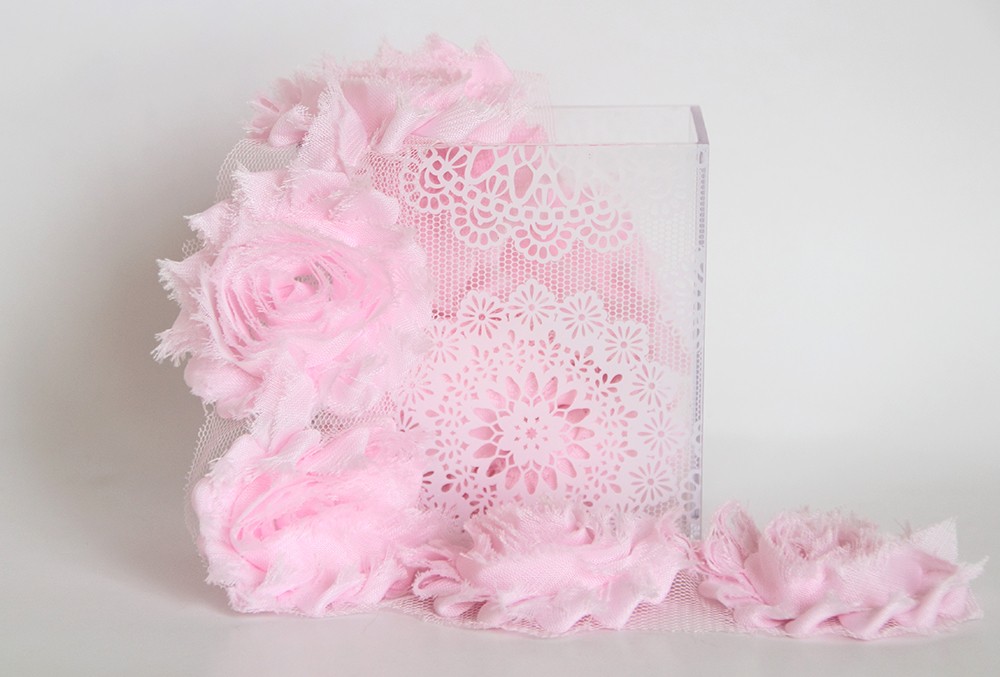Ширина ленты 6-7 см. Длина около 40 см (включает 7 цветов), диаметр 5-6 см