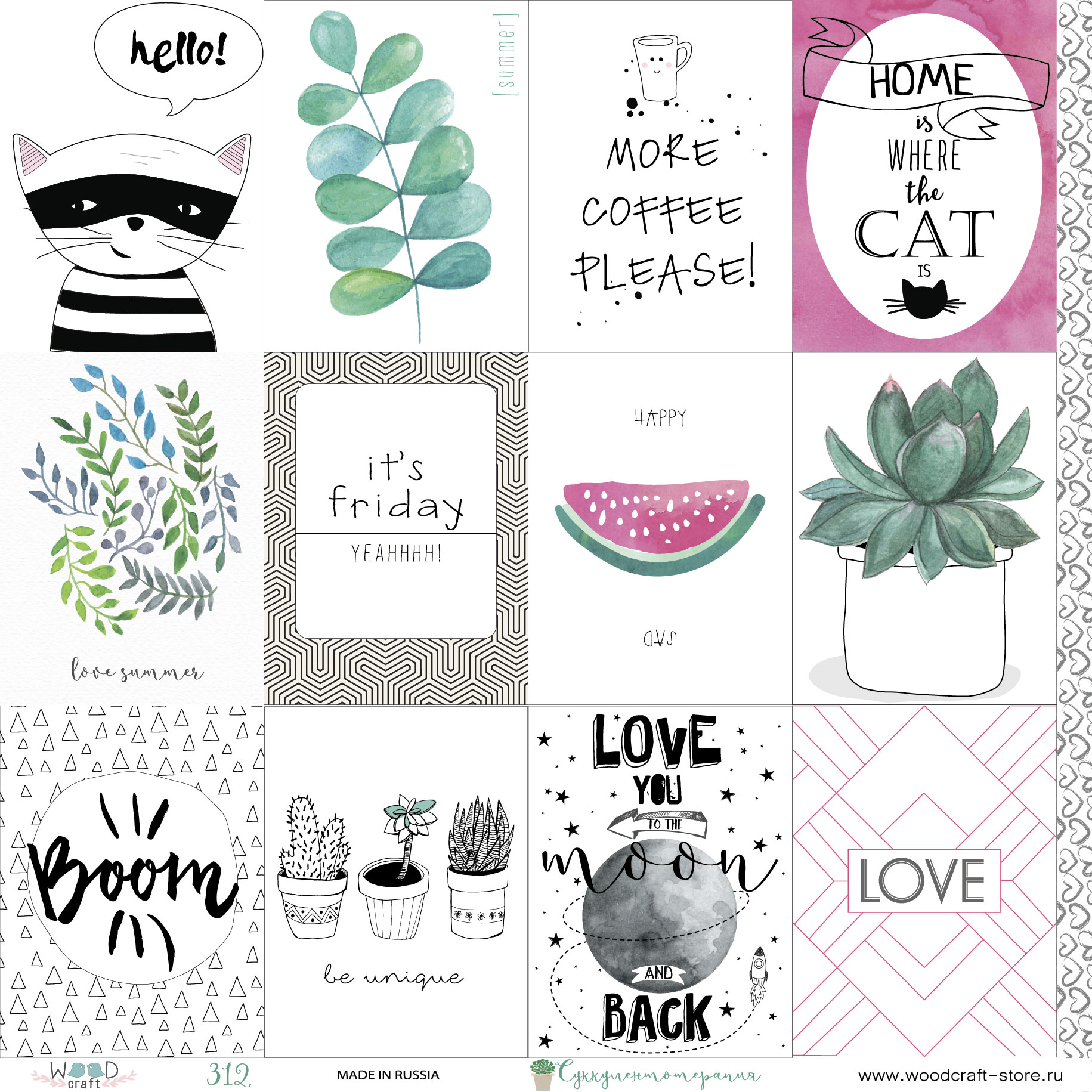 Лист с карточками для вырезания. Односторонняя бумага плотностью 190гр/м2. Размер - 30,5х30,5 см. Рисунок нанесен методом цифровой печати, в связи с чем не рекомендуется активная биговка.