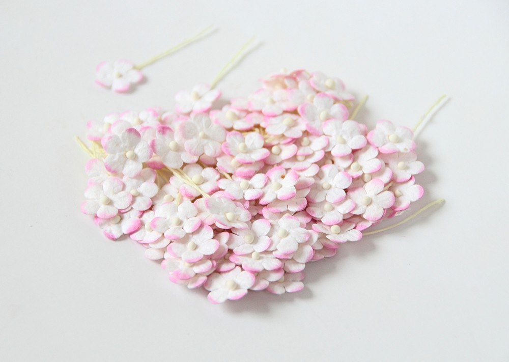 Мини цветочки 1 см 100 штук Бело-розовый