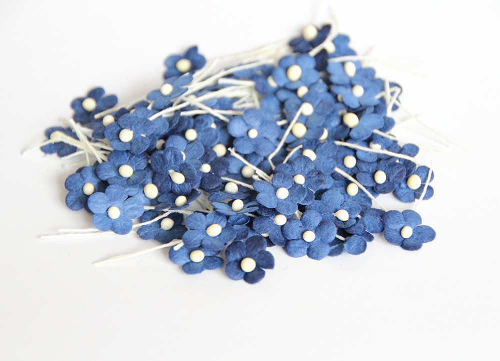 Мини-цветочки 1 см на стебельке, цвет синий, 100 штук