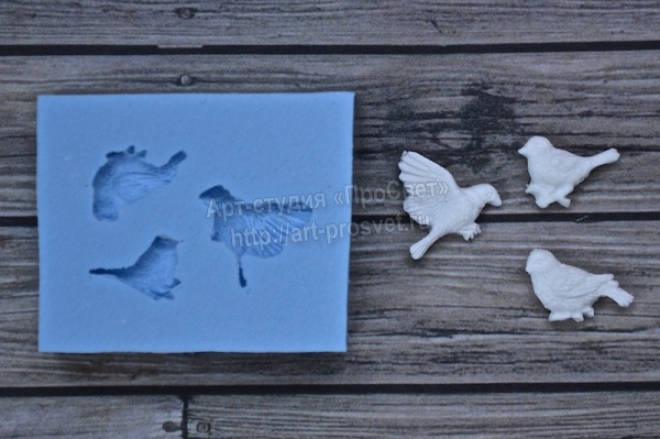 Молды (формочки) силиконовые. Используются с глиной, жидким пластиком и тд для получения объёмных декоративных фигурок.Размер каждой птички около 1см.