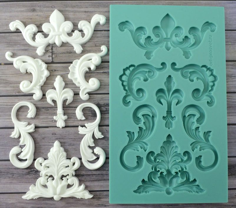 Молды (формочки) силиконовые. Используются с глиной, жидким пластиком и тд для получения объёмных декоративных фигурок.Размер среднего элемента 38х20 мм