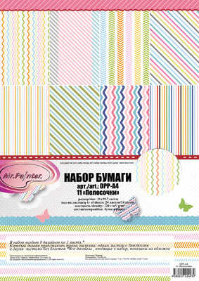 Набор из 24 листов односторонней бумаги. Размер А4. В наборе 8 дизайнов. Каждый дизайн представлен тремя листами: одним листом с блёстками и двумя листами без блёсток. Плотность около 120г