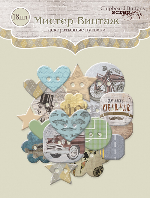 Набор пуговиц из чипборда ScrapМир "Мистер винтаж"