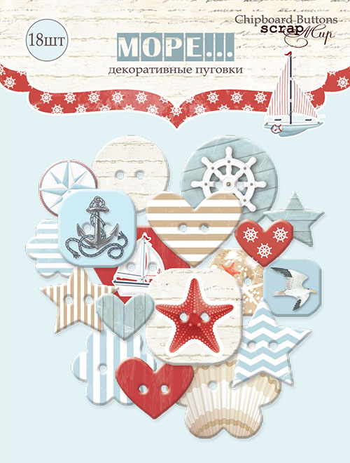 Набор пуговок из чипборда толщиной 1,3мм с принтом В наборе 18 шт