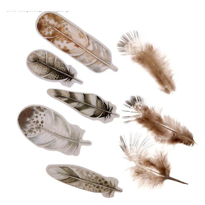 В набор входят 3 натуральных и 5 бумажных пёрышек. Цена за упаковку.