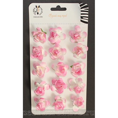 Набор роз 2,5 см Zebra, цвет розовый с белым