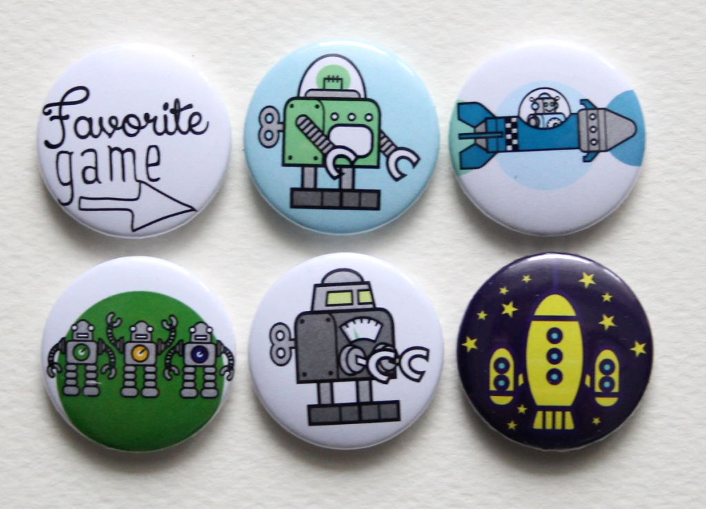 6 штук в наборе, диаметр 2,5 см Крепятся на клей или объемный скотч.