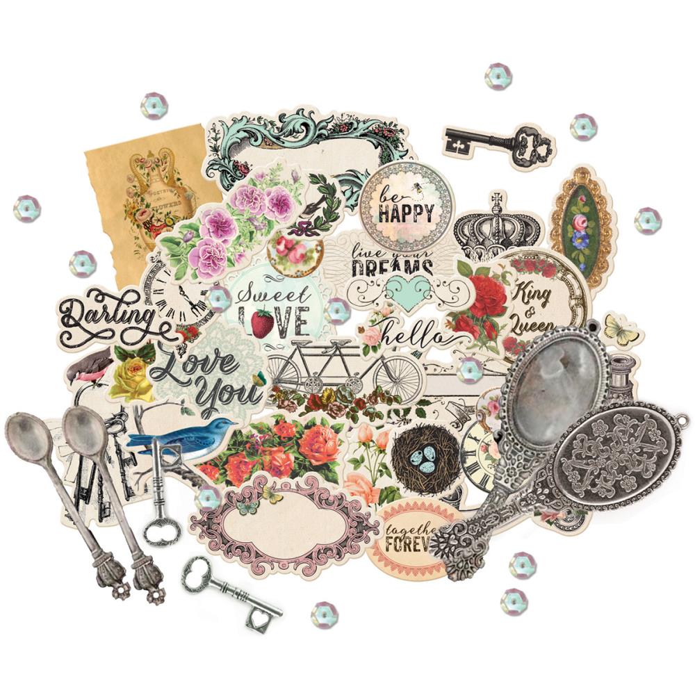Микс из чипборда, металлических украшений, пайеток, 43 элемента