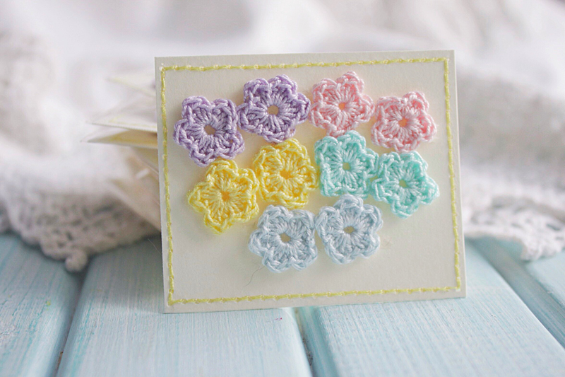 10 цветочков диаметром около 15 мм. Ручная вязка, ручная упаковка. Сделано с любовью:)