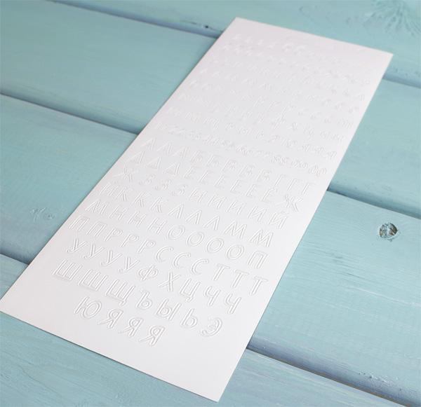 лист с наклейками, формат листа10 х 23 см. Высота букв 0,6 - 1 см