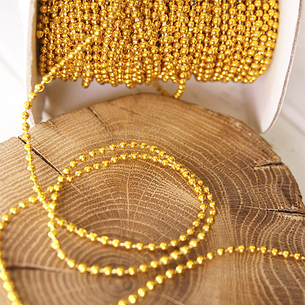 Нить с бусинками 3 мм, цвет золотой