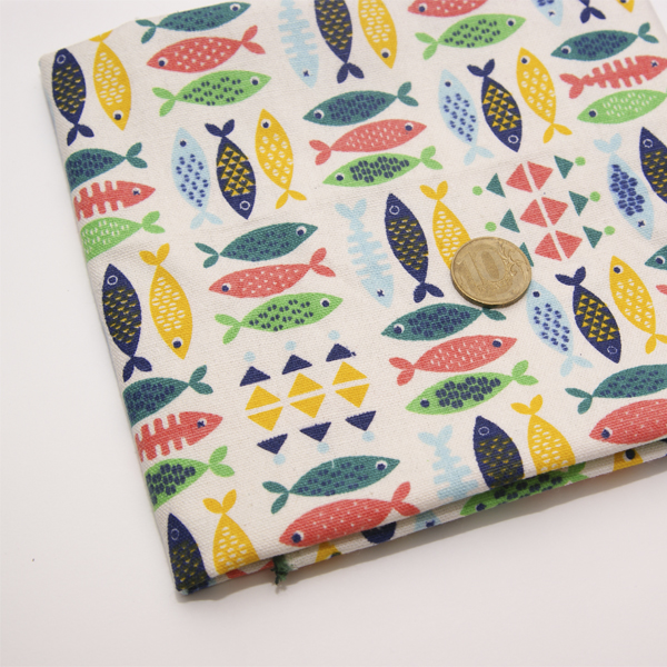 Отрез ткани 50 х 50 см Лён+ хлопок "Рыбы"