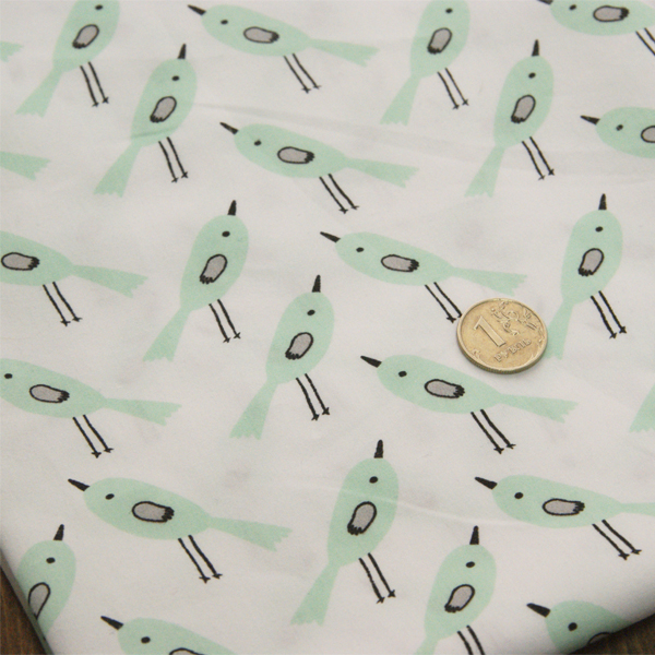 Отрез ткани 76 х 49 см "Мятные птички на белом"