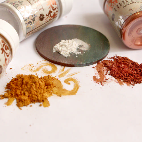 Перламутровый пигмент – это порошок из мельчайших частиц, который является очень эффектным и универсальным декоративным материалом. Пигмент можно размешивать или напылять на еще влажные окрашенные поверхности, покрытые лаком или структурную пасту под лак-аэрозоль. Идеально подходит для имитации металла, а также для затирки кркелюрных трещин – подчеркивает их выбранным оттенком и легким перламутровым сиянием.
