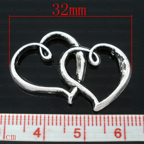 Подвеска "Двойное сердце". Цвет серебряный (116)