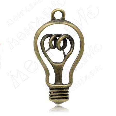 Подвеска металлическая "Лампочка". Цвет античный бронзовый. (165)