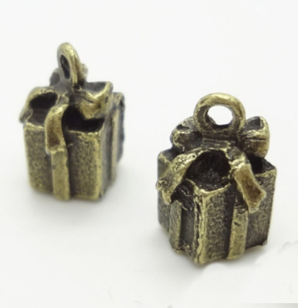 Подвеска металлическая "Подарочек объёмный". Цвет античный бронзовый.