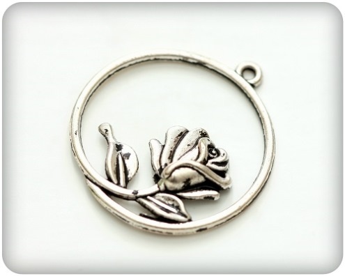 Подвеска металлическая "Роза в круге". Цвет серебряный. (400)