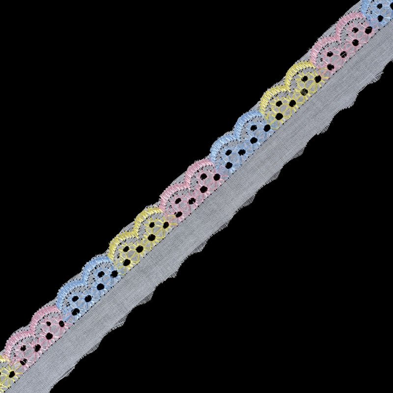 Шитье 2,5 см с вышитым краем, цвет желтый, розовый, голубой