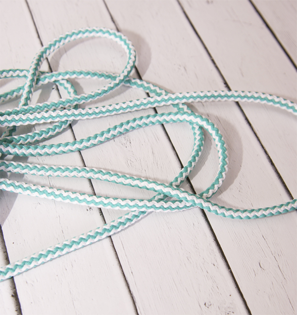 Шнур декоративный 5 мм, бело-бирюзовый