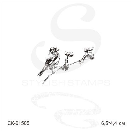 Штамп Stylish Stamp "Щегол на ольхе весной"