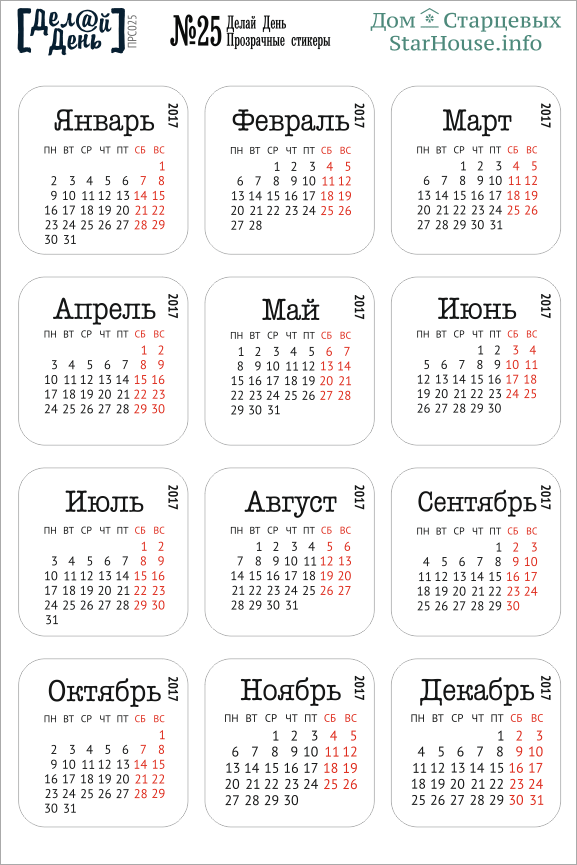 Стикеры "Делай день", календарь на прозрачной основе №25