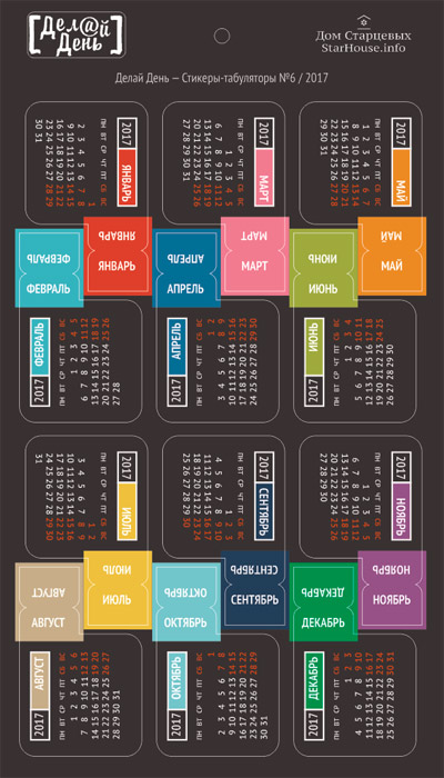 Стикеры "Делай день", табуляторы календарь № 6/2017