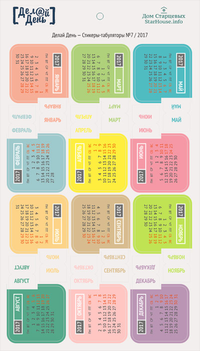 Стикеры "Делай день", табуляторы календарь № 7/2017