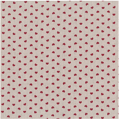Ткань лоскутная 50 х 55 см "18",лён + хлопок, красные сердечки